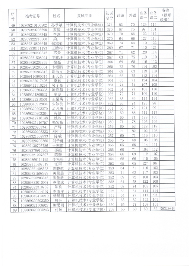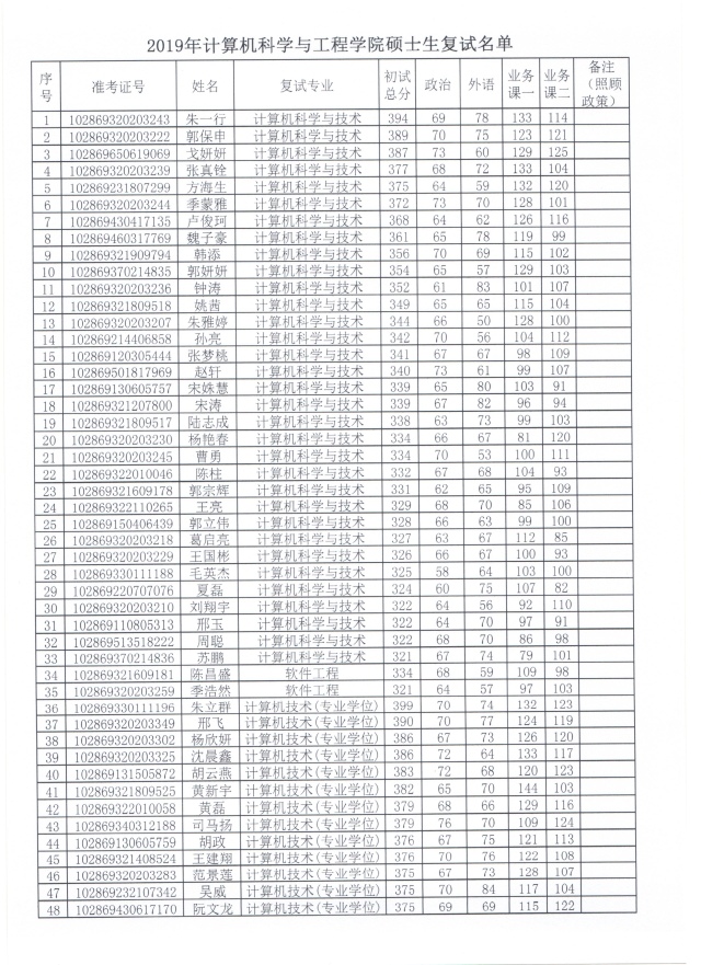 2019年计算机科学与工程黄金城官网 硕士生复试名单