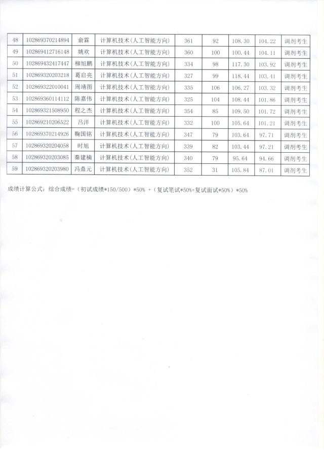 2019年苏州联合研究生院计算机技术专业硕士生复试结果