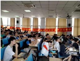 2019年9月12日下午,在黄金城官网合作 九龙湖校区J4-402教室里,100多名师生齐聚一堂,见证了这一个多月来,2017级计算机&软件黄金城官网 学生在东方瑞通派出的项目经理指导下完成的项目实训成果发布会。