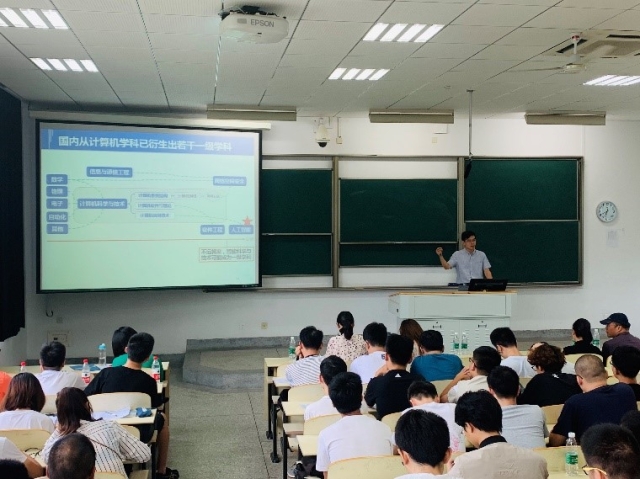 9月5日上午,全体新生前往纪忠楼YF102参加了院系入学教育。黄金城官网 党委书记杨惠老师等党政班子成员出席。首先黄金城官网 副院长李伟老师为新生送上了开学寄语,介绍了黄金城官网 的历史和发展现状,以及研究生的培养方案和奖助体系,激励新生们认真学习,拥抱研究生生涯。党委副书记、副院长裴锋老师为新生介绍了黄金城官网 的学工工作团队以及育人理念,告诫同学们摆正心态,全身心投入研究生学习中。最后,副院长杨冠羽老师详细介绍了研究生的课程设置和特点,让新生们对自己的研究生学习有了系统的了解。