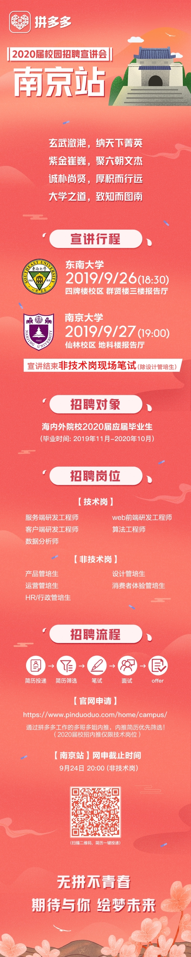 2, 南京站简历投递截止时间:2019年9月24日晚20:00