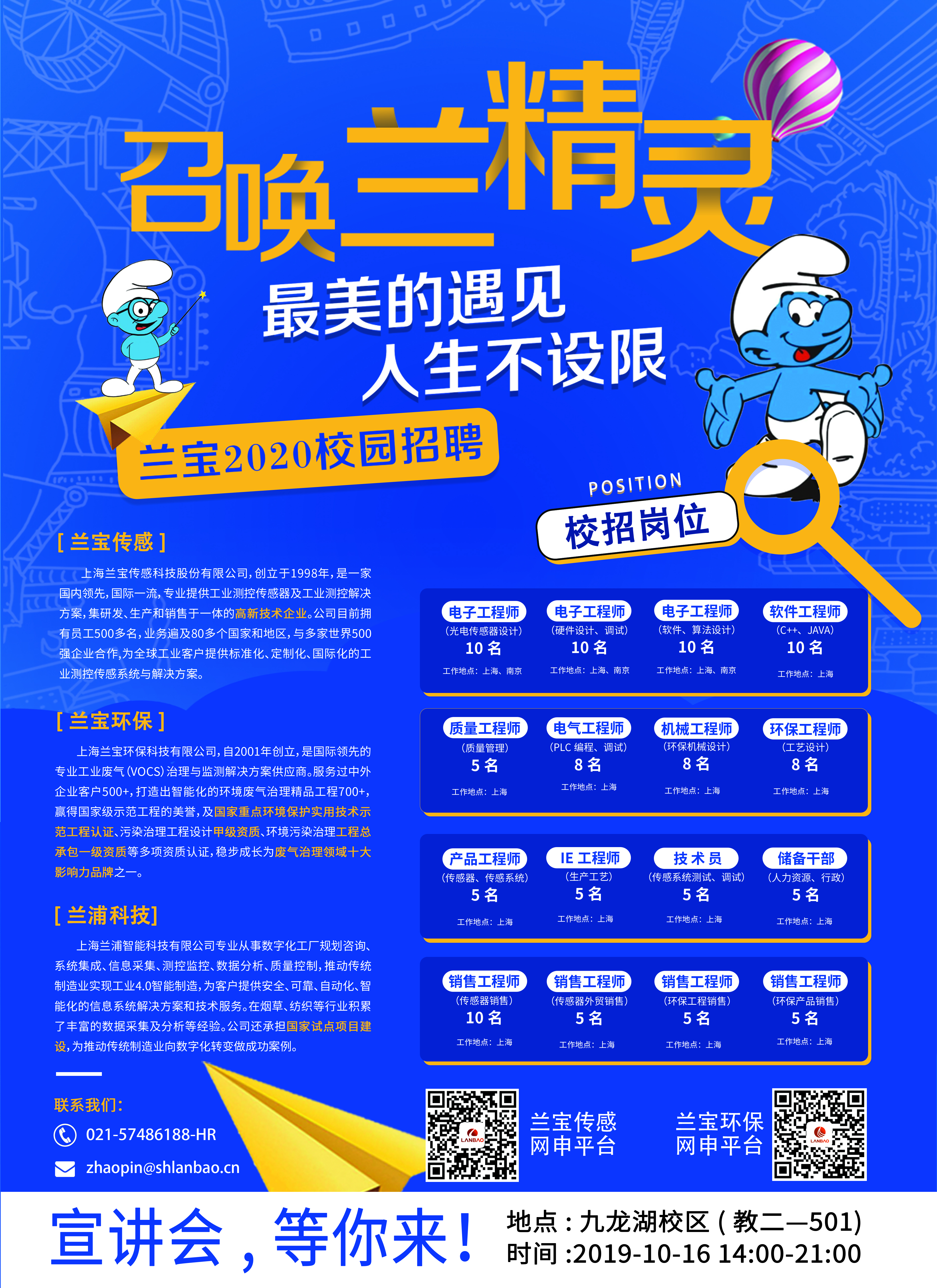 【2020招聘】上海兰宝传感科技有限公司宣讲会