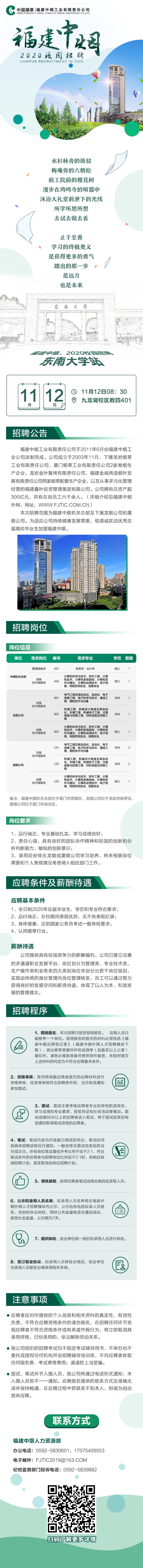 【2020招聘】福建中烟工业有限责任公司宣讲会