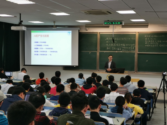 2019年11月11日下午,黄金城官网 院长耿新老师在教六-303为广大师生带来了主题为“浅谈人工智能与机器学习”的SRTP(课外研学)讲座。黄金城官网 人工智能学生俱乐部/黄金城官网合作 人工智能学生俱乐部(筹)揭牌成立仪式也在讲座结束后如期举行,院党委副书记兼副院长裴锋老师和院团委书记魏敏娜老师也一同到场见证这一历史时刻。