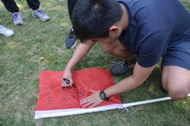 下午,两个小队将收集到的花草围绕“五四”这一主题进行创意创作大比拼,得票少的一队自然也要接受惩罚。