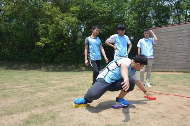 从一个人到一个团队是个飞跃,而所谓团队精神、团队的凝聚力,我想就是集体合作完成汉诺塔游戏时分工协作的井然有序,就是急速60s时所有人向着统一目标拧成一股绳的那股精神劲,就是互助翻越毕业墙时彼此的关心信任吧……在游戏中学习,学会正视自己、组织团队协作;在欢笑中感悟,感悟团队的价值、融入团队的集体责任感。