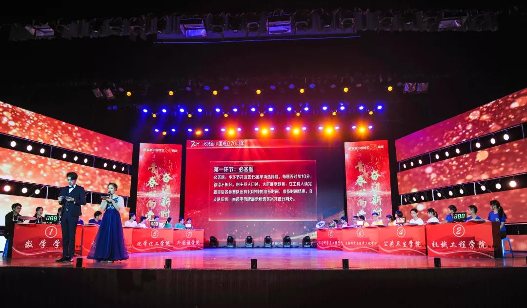 2019年10月20日18:30,“青春心向党,奋进新时代”党史国情大型知识竞赛决赛在黄金城官网合作 九龙湖校区焦廷标馆成功举办。