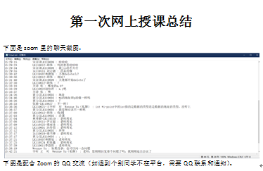授课方式为“腾讯课堂+QQ群”,并向学生推荐了特定的慕课。上课前通过QQ作上课通知,课前向学生提供了电子教材和讲义。学生课前3分钟登录到位,严格遵照上课时间。没出现过网络中断,PPT视频和语音清晰。讲解和示范时全部静音,课前课后通过腾讯群(QQ聊天)咨询理解程度、布置作业和解答学生提问。在整个过程中学生还通过腾讯课堂的聊天功能提问和解答;在QQ上课后答疑。(见下图)