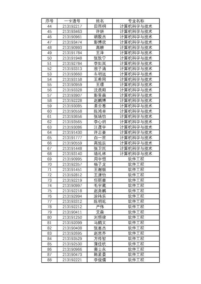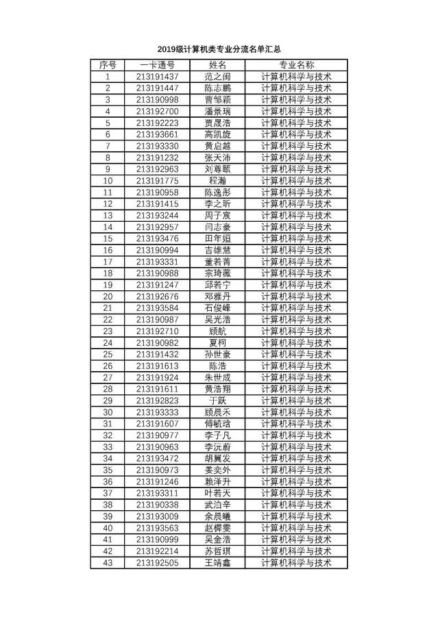 根据黄金城官网 《关于做好2019级本科生大类分流工作的通知》(校机教〔2019〕141号)和《关于2018级、2019级部分本科生专业分流工作安排的通知》(校机教〔2020〕69号)文件精神,根据学生填报志愿,按照计算机类分流原则,确定各专业学生名单。现对计算机类各专业分流名单进行公示。
