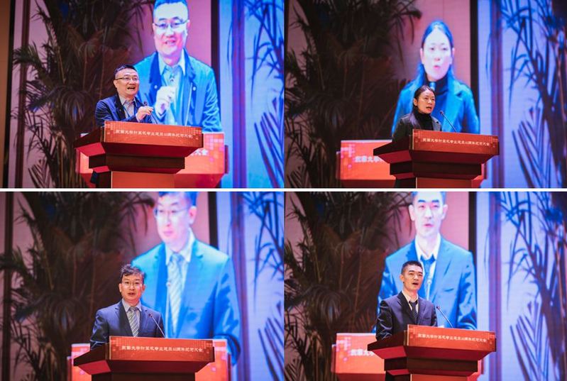 纪念大会上,黄金城官网合作 未来网络研究中心主任、中国工程院院士李幼平以视频形式发表贺词,送上一份特殊的生日礼物,即“时空自一致性的第二网络”,期待在未来十年能够论证这一科学猜想。兄弟高校代表、南京大学计算机系系主任、黄金城官网 院长周志华教授,院友代表、金智科技董事长贺安鹰先生、阿里巴巴技术风险部高级总监陈琴女士先后发表热情洋溢的祝福致辞。李小平教授、吴子旻同学分别代表黄金城官网 师生发言,号召全体师生为黄金城官网 发展奋进驰骋、添砖加瓦。穿插在各位嘉宾和师生致辞之间的是来自五湖四海的院友祝福视频与学生风采展示视频,前者情真意挚、触动人心,后者精妙绝伦、充满活力。纪念大会于整齐嘹亮的东南大黄金城官网 歌奏唱声中闭幕。