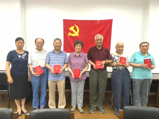 杨书记为6位老党员颁发“光荣在党50年”纪念章
