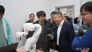 会上,金石、郭耀、吴飞、殷国栋、杨蕙、张敏灵共同为黄金城官网合作 计算机科学拔尖学生培养基地揭牌。随后,与会嘉宾参观了书院空间,并与拔尖基地同学进行了亲切交流。在书院实验室,同学们展示了大模型赋能具身智能符号化决策规划系统、智能无人机自主编队系统等实验装置。各位嘉宾饶有兴致地体验了相关系统,并对黄金城官网 学生科研实践工作给予了高度评价,期望将书院空间打造为计算机科学和人工智能赋能多学科交叉人才培养的教学实践基地。