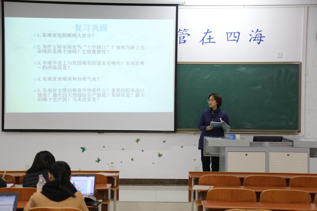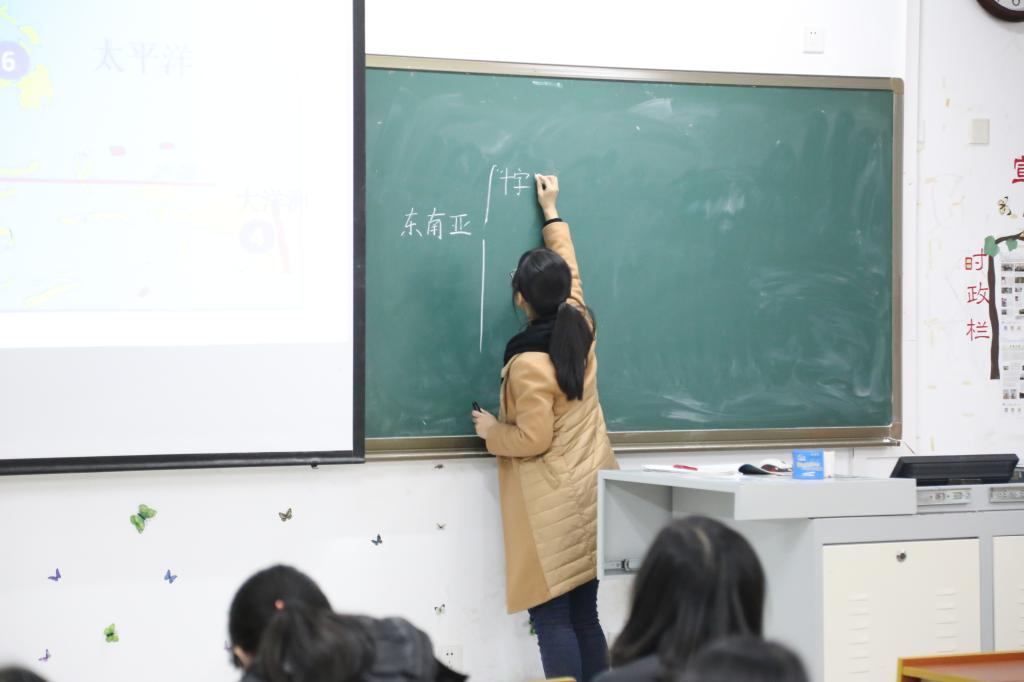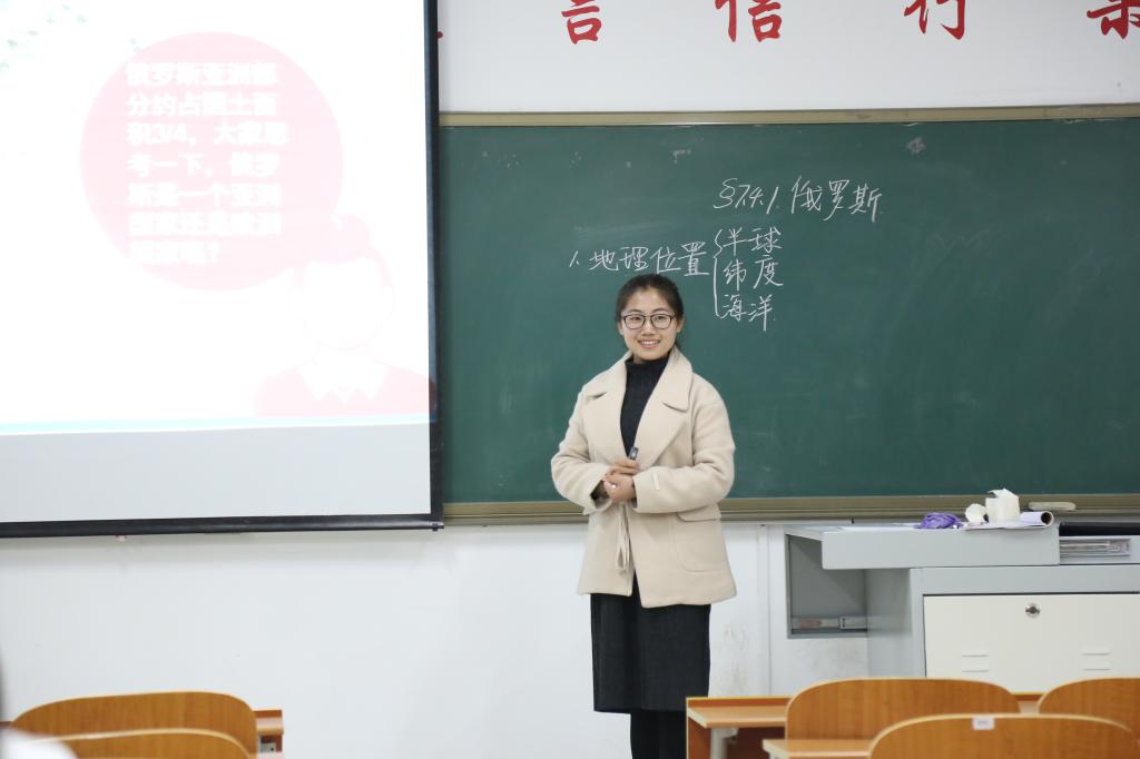 在教育实习第三周组织各个实习组之间进行教学观摩和试讲交流活动。