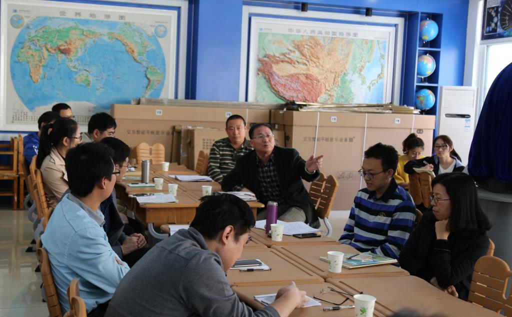 领导慰问了在校实习同学,了解了见习、实习和研习开展情况,并和指导老师、同学们一起对王雅欣新授课进行了集中评议。指导老师们从地理核心素养、教学目标、教学设计、师生互动、板书设计、课件制作等方面进行了认真评析,提出了改进的建议和措施。
