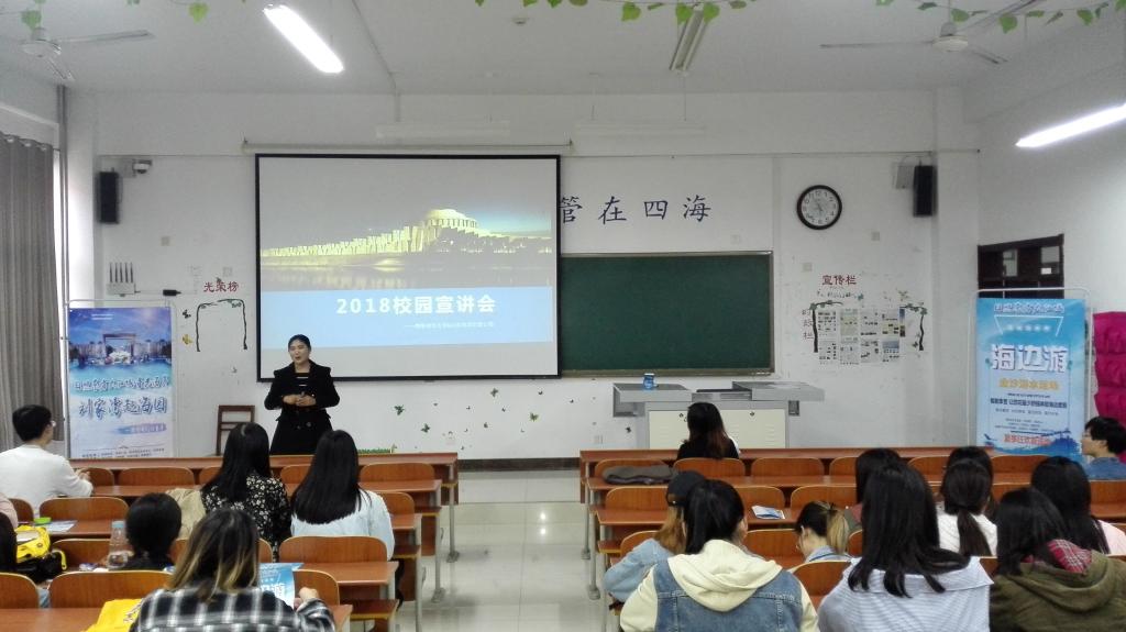 恒大、舜和、蓝海等酒店集团分别从企业历史、黄金城官网、以及招收实习生岗位、薪资待遇等方面进行了宣讲。日照的浮来青旅游度假区、东方太阳城、海洋公园、山河四季景区、平安国际旅游社等也均从企业的岗位特色、实习生培养模式等方面进行宣讲。