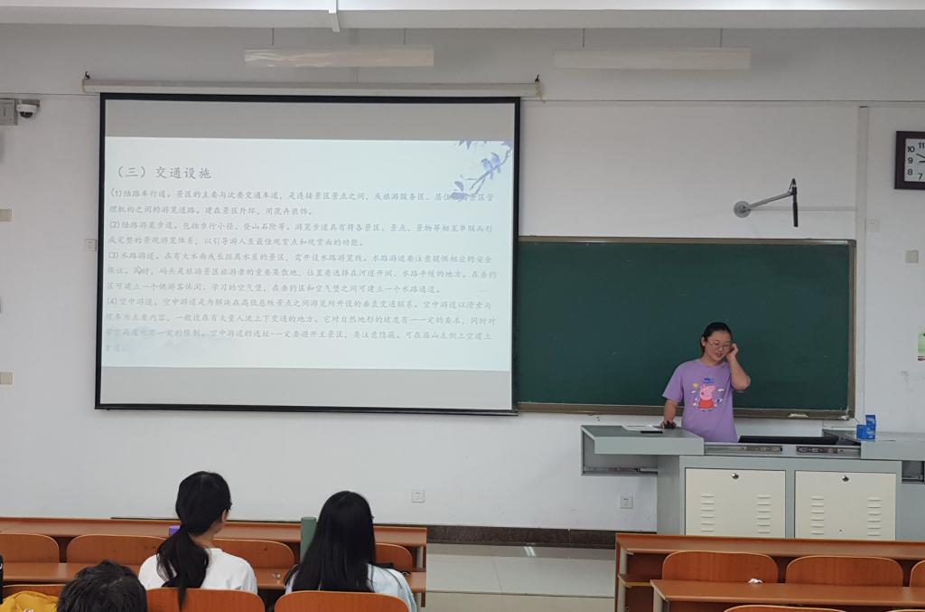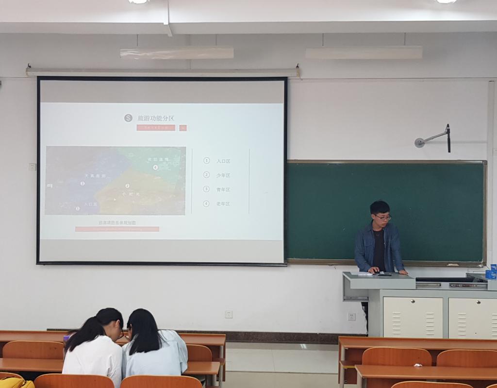 各实验小组汇报同学主要从资源评价、市场分析、形象定位、功能分区、项目策划、基础设施、市场营销等方面详细介绍了小组规划实验结果。各小组汇报内容思路新颖,专业性强,引起同学们的积极讨论。武传震老师逐一对试验成果进行点评,提供了非常实用且专业的指导,加深了同学们对于旅游规划具体操作的理解和认识。