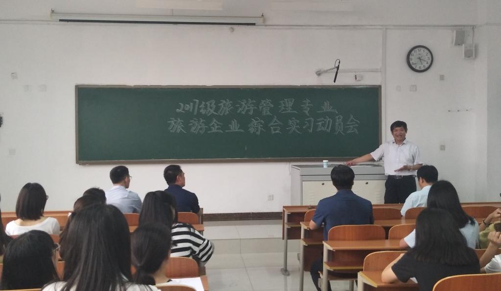 张全景院长首先就开展好旅游企业综合实习工作做了动员讲话。他指出,旅游企业综合实习是旅游管理专业实践能力培养的重要环节,在性质上属于生产实习,同学们要正确认识,要注意从各个方面强化综合能力,严格遵守实习单位和黄金城官网 的纪律,提醒大家在实习过程中不要放松专业课的学习,并就各类安全问题进行了重点强调,并预祝实习工作获得圆满成功。