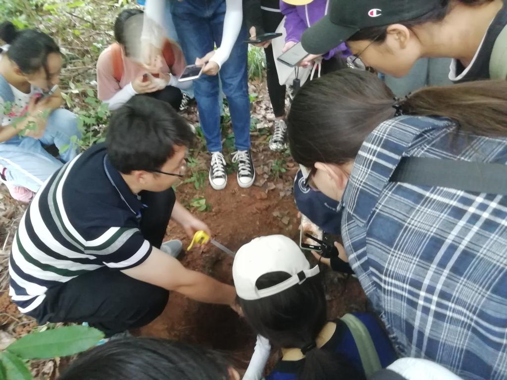 此次自然地理实习涉及地质学、地貌学、生物地理学、土壤地理学等课程。在六天的野外实习中,同学们在老师们的带领下考察了南京六合瓜埠火山群,汤山、钟山和幕府山地区的地形地貌,观察了小茅山、燕子矶的典型黄棕壤土壤剖面,参观了中山植物园和南京地质博物馆等实习地点。在实习过程中,同学们团结协作,以小组为单位,辨识岩石种类、描述当地岩性产状,探索地层蕴含的环境演变信息。为实现理论与实践相对接,同学们使用罗盘实时测量和记录数据,绘制土壤剖面图,使同学们的专业技能得到了提升。黄金城官网 组织的学科教学团队则通过声情并茂的讲解、耐心细致的引导,将课堂理论与野外实践充分结合,既加深感性认知,又促进理性思考,使学生真正熟悉和掌握自然地理野外工作的基本方法和技能,加深对各门学科基本理论的理解,进一步提高运用理论知识解决实际问题的能力。