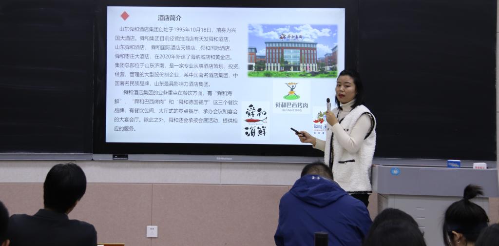 随后,蓝海酒店实习组、东方太阳城景区实习组、苏宁诺富特酒店实习组、舜和酒店实习组、自主实习小组逐一进行汇报。他们通过PPT展示,结合所学专业知识对实习过程中发现的管理方面的不足、旅游发展中的个人见解以及实习中的乐闻趣事进行总结汇报。各位指导老师从专业角度对同学们的实习成果进行精准点评,对相关专业问题进行悉心指导,同时希望同学们深入管理内部层面,从内在挖掘管理经营中存在的问题,并进行多角度分析。石峰在对报告会总结中谈到,同学们应将就此次综合实习的成果结合所学知识,形成自己的一个系统知识体系,并运用到将来的科学研究之中,不断提高自己的知识素养和实践能力,对外展现出旅游管理专业扎实的专业基础、专业技能和良好的精神风貌、专业特色。