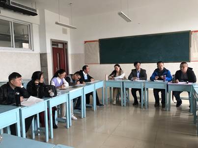 副院长吴军教授带领院长助理于伟老师、教育实习指导小组副组长李剑老师、教育实习指导教师谭丽荣、赵林、王振海、赵爽、刘庆果、周维国、樊立惠等老师于4月21日前往日照黄海高级中学,与实习同学一起在高二16班观摩实习生王会萍同学的课堂授课,并在课后进行了集体评课。