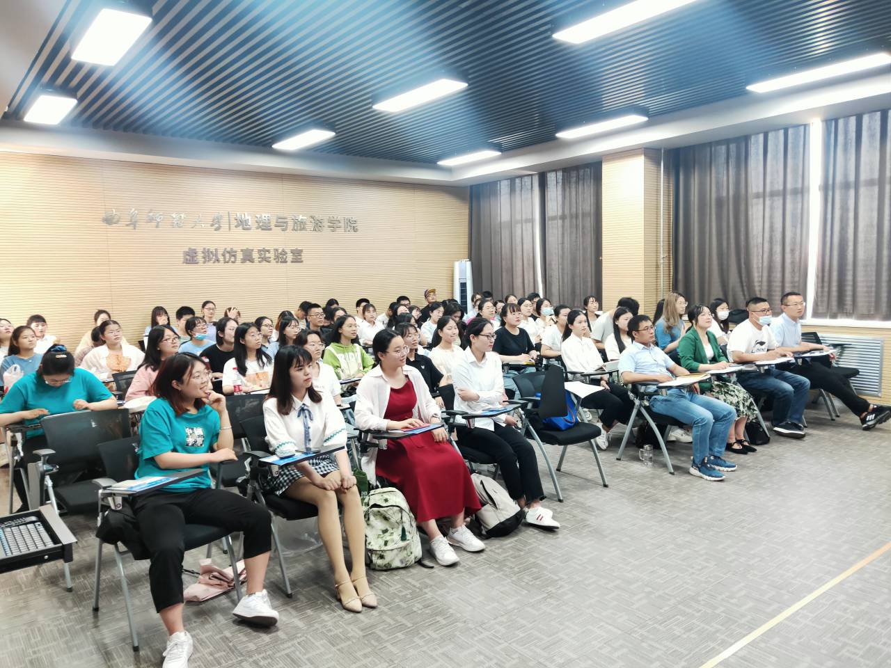 于虚拟仿真实验室举办会展旅游策划大赛。比赛邀请到日照市会展中心李霞经理、日照会展协会张皓然老师、旅游管理专业老师陈艳峰、徐凯担任评委,会展旅游主讲教师张瑜及2018级旅游管理专业全体本科生参加。