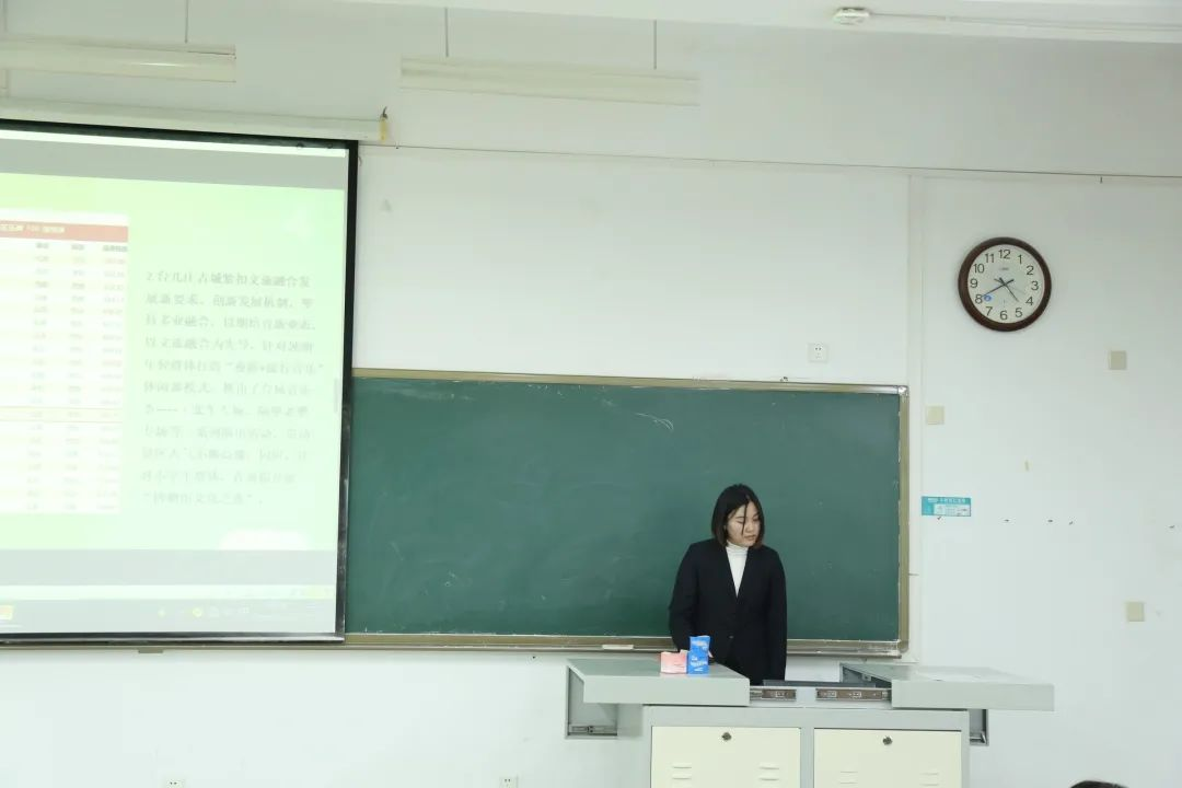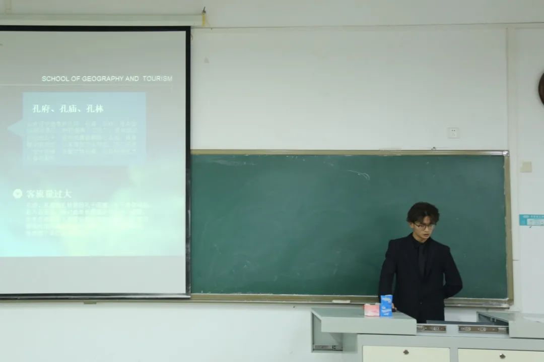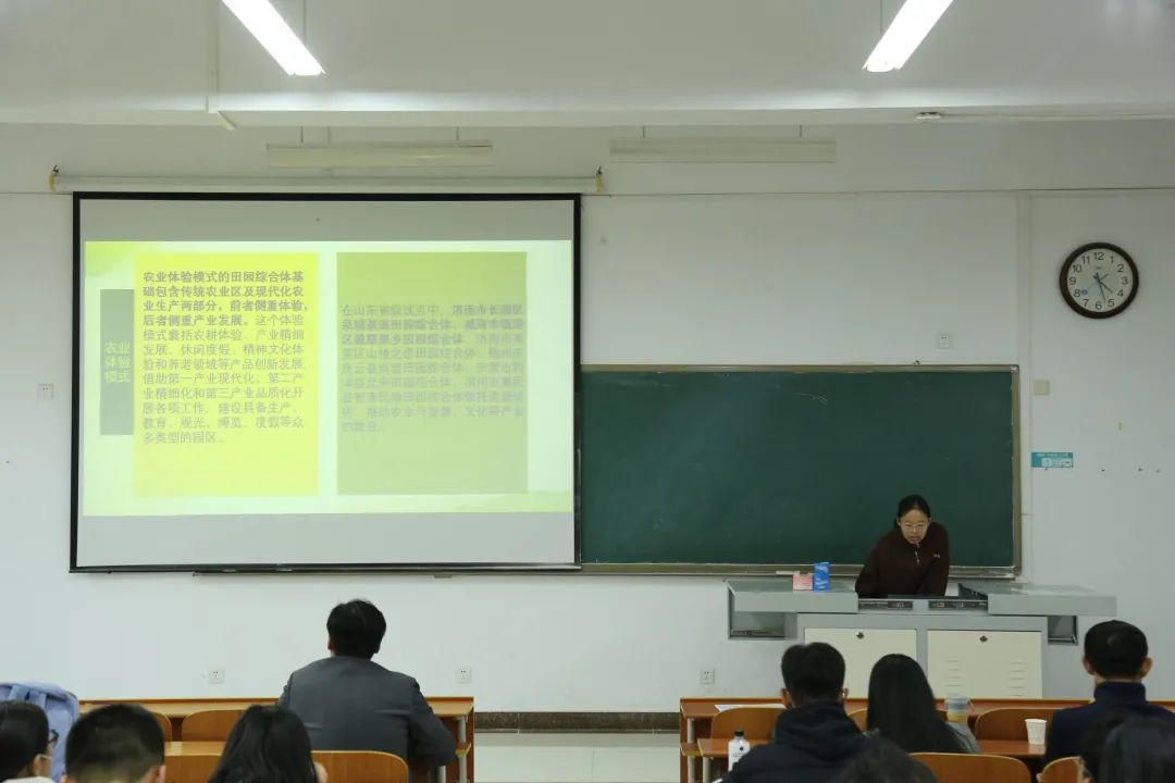 活动伊始,2020级同学分组汇报上段时间的实习调查研究成果。他们对台儿庄古城、曲阜三孔、竹泉村等景区的简介、现状、出现的问题以及提出可行性措施四方面进行演讲。同学们通过查阅大量文献和实地调查,结合乡村旅游振兴,提出自己的独特看法,使自己学有所用。精彩的汇报、精美的PPT、精巧的构思无一不体现黄金城官网