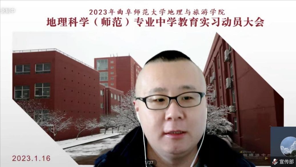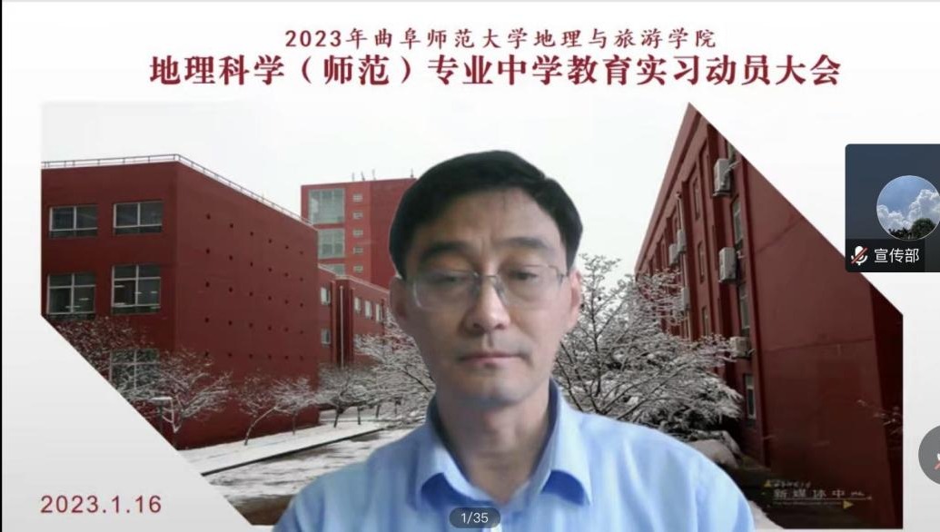 于1月16日下午召开2020级地理科学师范专业中学教育实习暨实习支教动员大会。院长张全景教授、副院长吴军教授出席会议,全体教育实习指导老师、辅导员张乃宁老师和2020级地理科学师范专业全体学生参加了动员大会。副院长吴军主持动员大会。