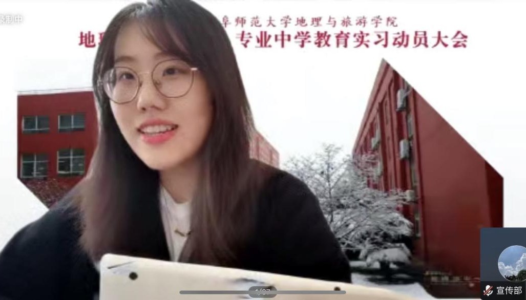 2020级地理科学公师班叶繁同学代表全体实习生发言,她代表2020级全体实习生作出承诺,虚心接受指导老师的意见并且切实落实到之后的教学工作中去,遵守规章制度,注意言行举止,充分展现曲园地理学子风采,圆满完成教学实习任务。