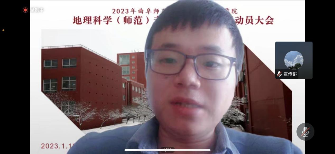 院长张全景教授、副院长吴军教授出席会议,全体教育实习指导老师、辅导员张乃宁老师和2020级地理科学师范专业全体学生参加了动员大会。副院长吴军主持动员大会。