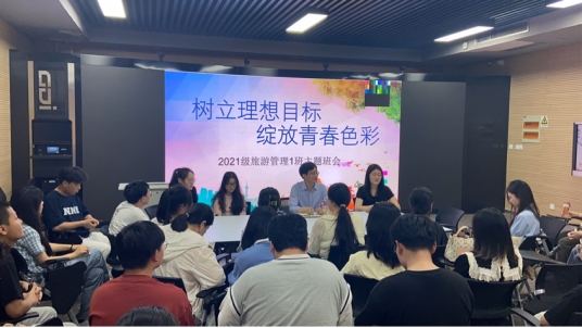 为了帮助同学们更好地在实习、考研等方面做足准备,明晰未来发展规划。2023年6月1日,2021级旅游管理一班举办了“树立理想目标,绽放青春色彩”主题班会。此次会议邀请了吴军副院长与同学们进行交流,2021级旅游管理一班全体学生参加。