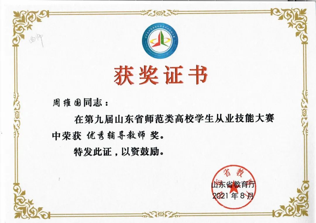 连续三次(第九届、第十届、第十一届)获得山东省从业技能大赛优秀辅导教师;