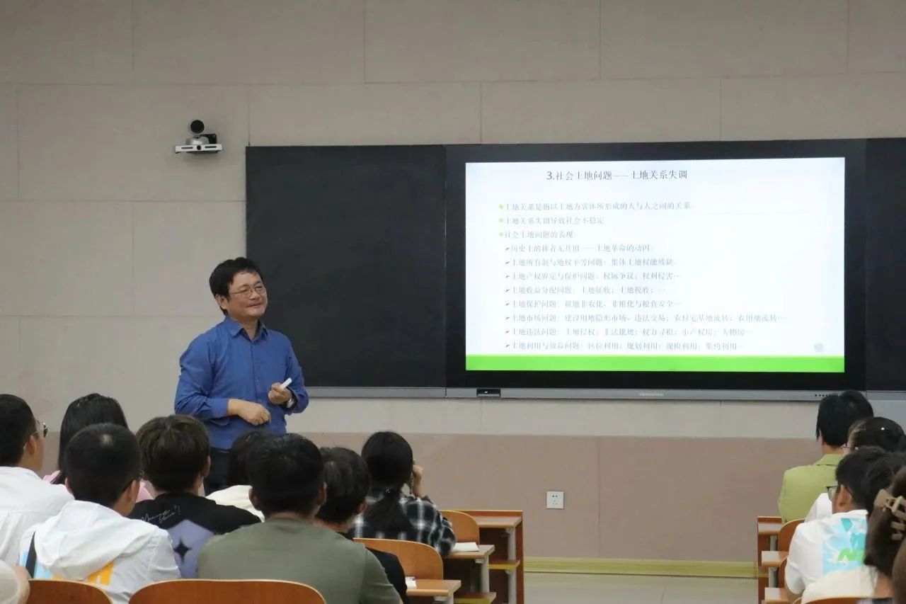 在土地资源管理专业教育会上,张全景院长以“扎根神州大地擘画青春经纬,胸怀国之大者赋能国土管护”为题,从多姿多彩的土地利用类型入手,阐明土地利用管理中的原生土地问题、次生土地问题和社会土地问题,深入浅出地剖析了“为什么学习土地资源管理专业”,激励同学们“立地弘文、厚土追梦”,运用“科学、技术、制度、政策”工具认识土地、利用土地、经营土地、管护土地、建设人地和谐的生命共同体。然后,张院长讲述了土地资源管理专业的发展历史,分析了文理工兼备、综合交叉的专业性质,阐述了“土地科学+土地管理+土地工程”的知识逻辑体系,详细解析了土地资源管理专业人才培养方案,解读了“核心课程+”人才培养模式、“平台+模块+课组”专业课程体系、“合格+特长”实践教学模式等专业培养特色,鼓励同学们“脚踏实地、志存高远”学好土地资源管理专业。为使同学们更好地了解本专业,张全景还向新生们介绍了核心课程的教师以及一些优秀的毕业生,他鼓励2023级同学能以谦逊的态度向优秀前辈学习,全面发展自己的能力。宝剑锋从磨砺出,梅花香自苦寒来,他希望同学们能在求学之路上披荆斩棘,不断追求知行合一,以海阔凭鱼跃,天高任鸟飞的态度来开始他们的学习与成长之旅。