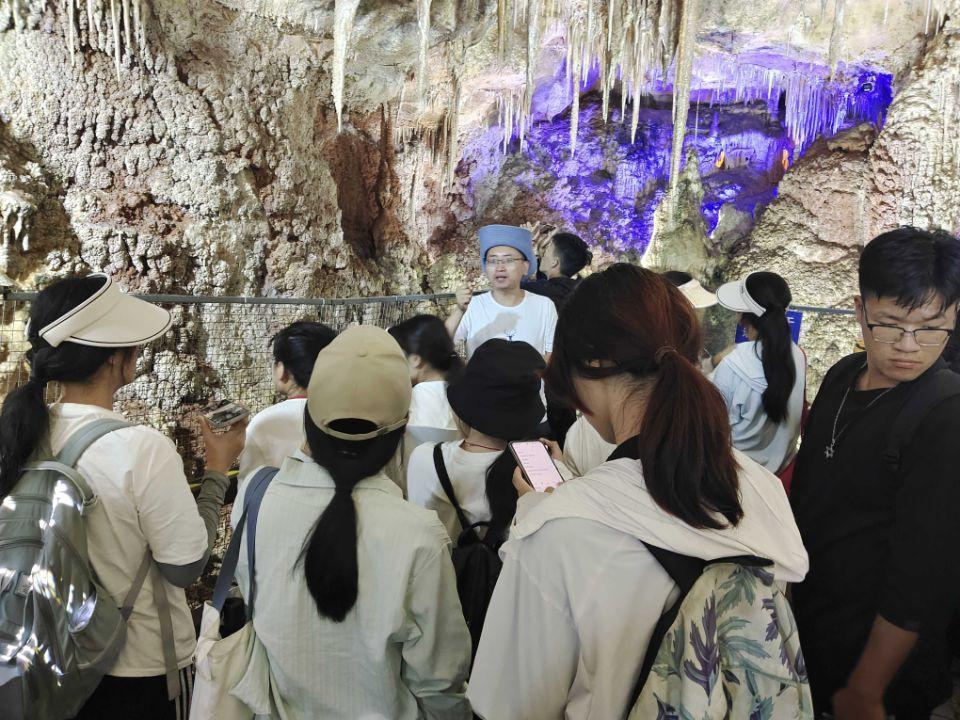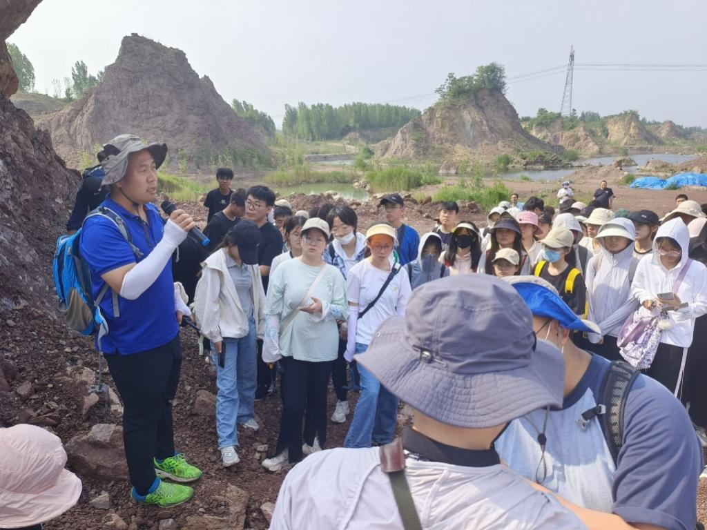 27日,同学们前往日照莒县长岭镇白土沟村,考察学习断裂、褶皱等地质构造以及地层与岩石相关知识。28日,前往昌乐火山地质公园,观察学习当地火山地貌,了解四个不同的历史时期该地形成的玄武岩。29日,前往沂源鲁山地质公园和九天洞溶洞,带队老师给同学们讲解球状风化、根劈作用以及卸载作用,共同回忆喀斯特地貌的形成过程。30日,同学们前往莒县浮来山学习沉积地层和构造,赴刘家湾赶海园学习粉砂淤泥质海岸地貌特征。
