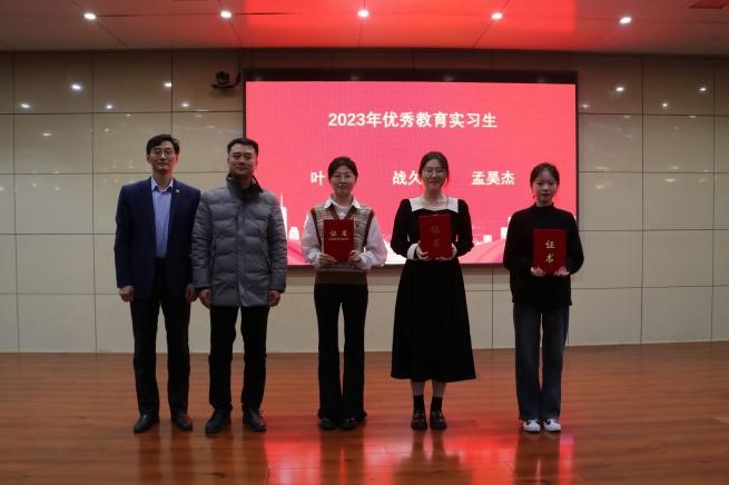 对2023年教育实习表现优秀的同学进行了表彰。叶繁、战久宁、孟昊杰、朱子青四位同学获黄金城官网