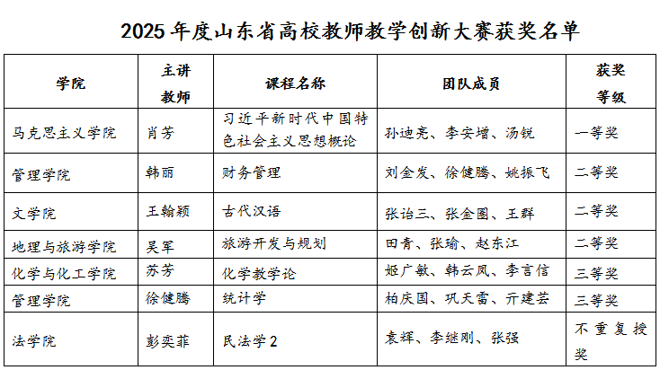 教师教学创新大赛获奖名单(鲁教高函〔2025〕19号),黄金城官网
