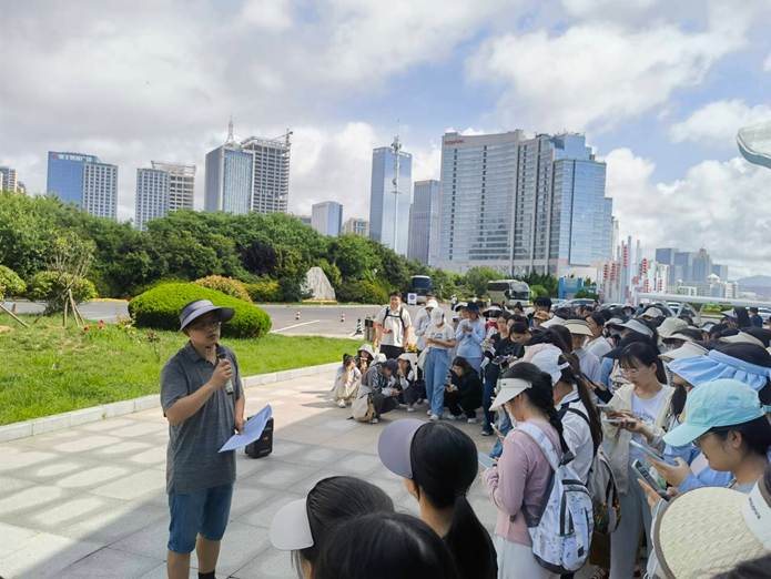7月8日同学们走进青岛市城市规划展览馆,通过实习指导老师郭付友的讲解了解了青岛市的发展历程,指导学生围绕青岛行政规划调整与城市规划及如何关联日照、连云港协同发展等议题进行思考,有利于同学们充分联系课本教材知识,探究区域规划联动、城市空间优化的内在逻辑。下午,同学们前往八大关景区考察,在指导教师张学波的讲解下,认识青岛历史街区保护开发、建筑文化传承的典型性,引导学生思考历史建筑活化利用以及与城市现代化的平衡。