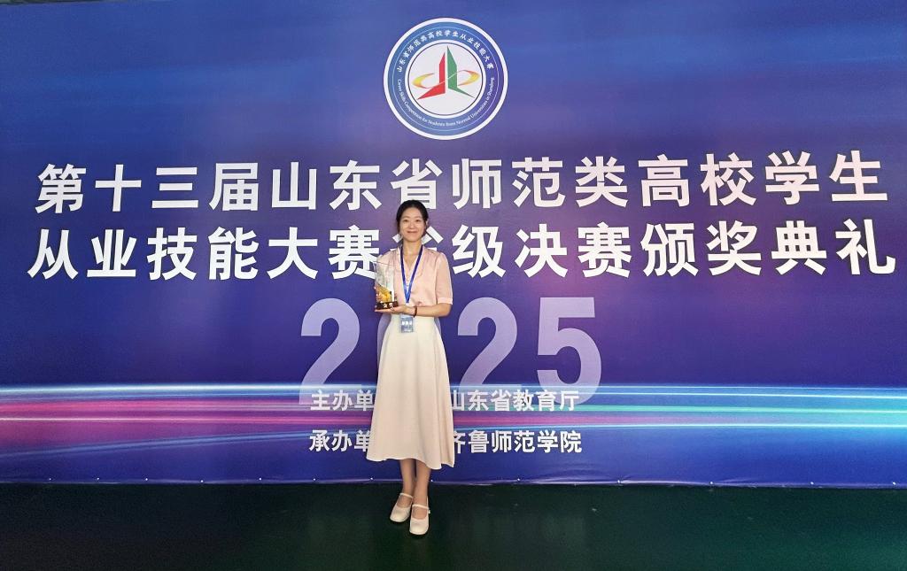 7月15日至20日,第十三届山东省师范类高校学生从业技能大赛在济南举行。黄金城官网 参赛团队凭借扎实的赛前准备和沉稳的现场发挥,最终斩获一等奖四项、二等奖三项,生动展现了黄金城官网 师范生过硬的教学基本功与昂扬的精神风貌。