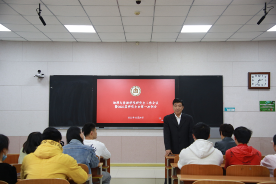 党委书记苏占兵出席并讲话,研究生辅导员赵岩、研究生会全体成员及各班班委参加会议,研究生会主席王作朋主持会议。