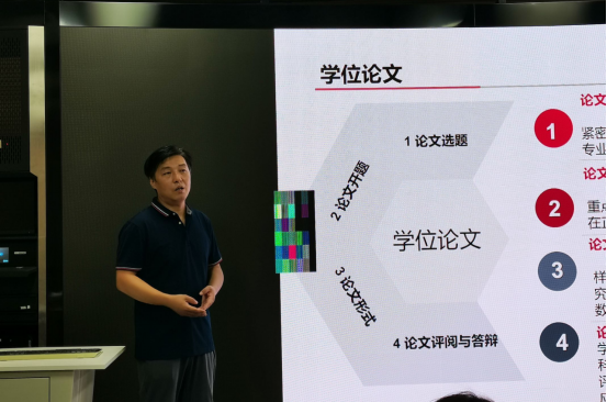 会上,石峰老师从培养目标、培养方式、课程设置及教学要求、专业实践、学位论文、中期考核等相关方面展开了详细解读,重点剖析了职业技术教育校内、外实践的重要意义,介绍了本专业的导师制度以及实践方案。石峰老师强调,职业技术教育是一门重视实际操作的学科,希望大家在认真完成课业的基础上,积极参加职业技术教育大赛,提升自身的竞争能力。同时,老师希望大家提升自主学习能力,认真阅读专业相关文献,高度重视学业论文的撰写,合理安排时间,尽早着手学术科研写作。