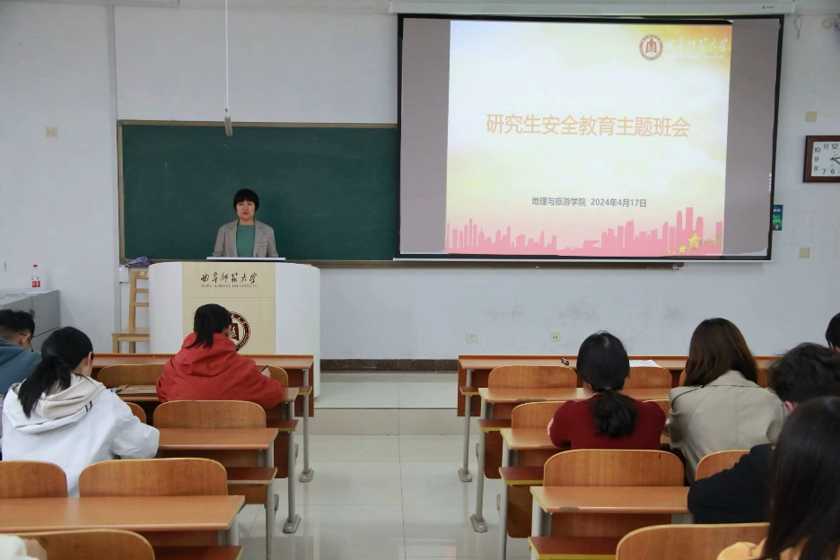 在S413举行了防汛防台风安全教育主题会议,会议由研究生辅导员赵岩主持,研究生各班班委、党支部成员参加会议。