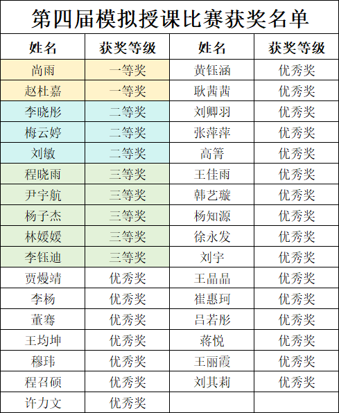 经过激烈角逐,尚雨等2位同学荣获一等奖;李晓彤等3位同学荣获二等奖;程晓雨等5位同学荣获三等奖;其余同学为优秀奖。