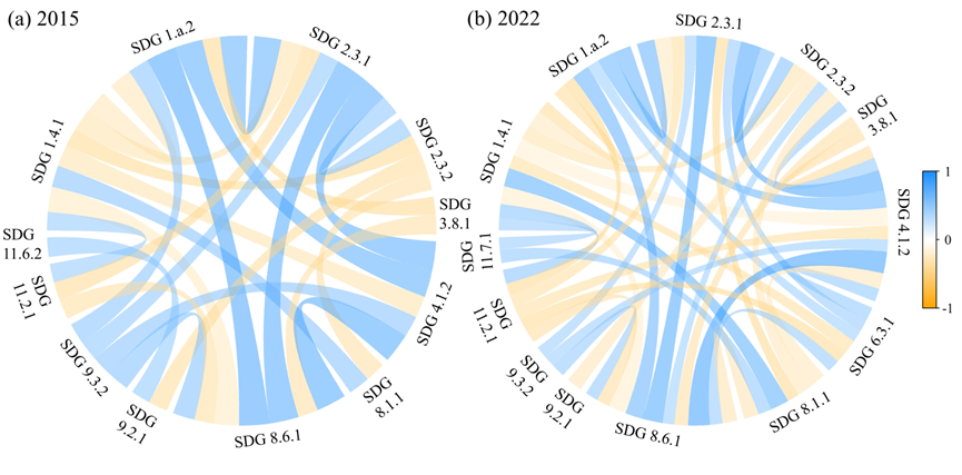 图3 2015年与2022年可持续发展目标(SDGs)指标间的协同与权衡关系