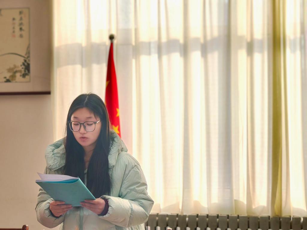 实习代表李新琦发言,表达了对此次实习机会的珍惜与期待,期待向经验丰富的教师学习教学方法与课堂管理技巧,同时将努力把所学知识融入教学实践,激发学生对地理学科的兴趣与热情,为未来的职业发展积累经验。