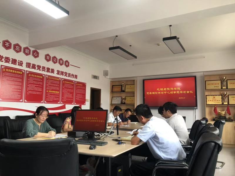 “不忘初心、牢记使命”主题教育工作会议上的讲话精神。党委委员、各党支部书记、团委书记、部分教研室主任参加学习会。