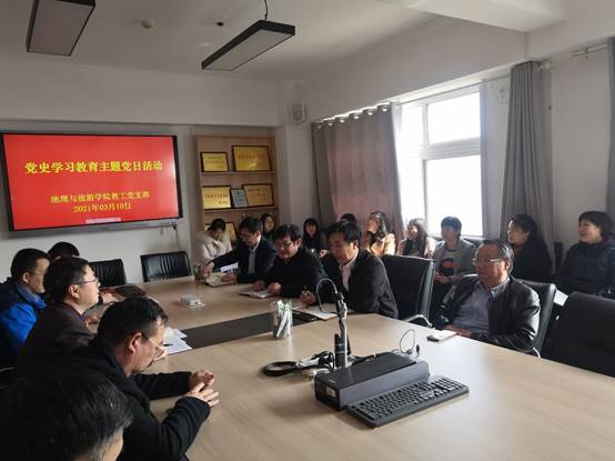 教工党支部在会馆2401组织开展党史学习教育主题党日活动。活动由教工党支部书记刘志刚主持。