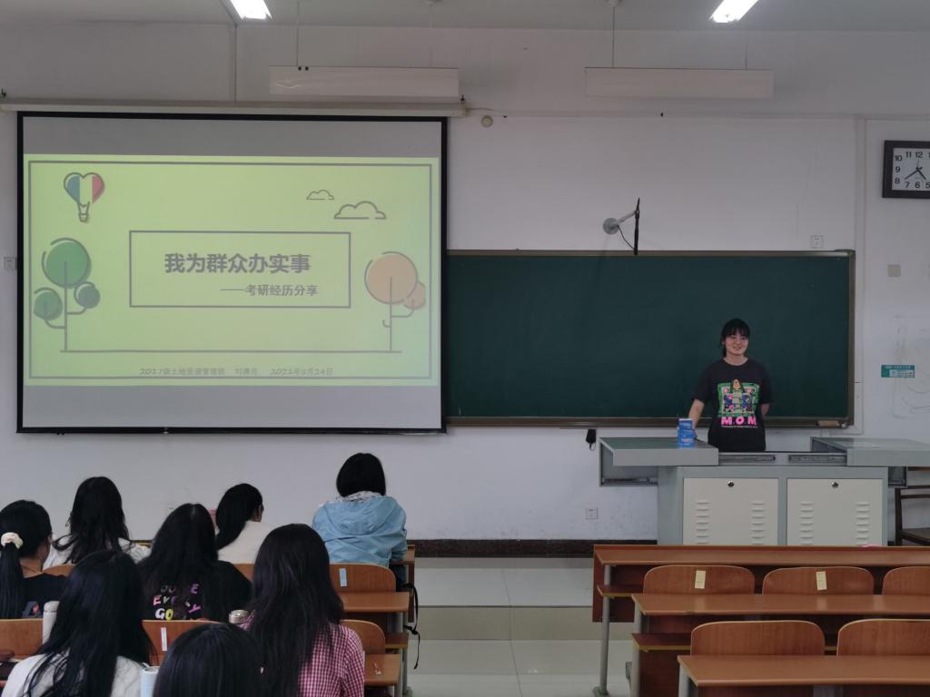 于5月24日在S413组织开展2018级土地资源管理管理专业“学习经验交流会”。2017级土地资源管理专业学生党员代表刘潇月、彭敏、张茹担任本次交流会的主讲人。