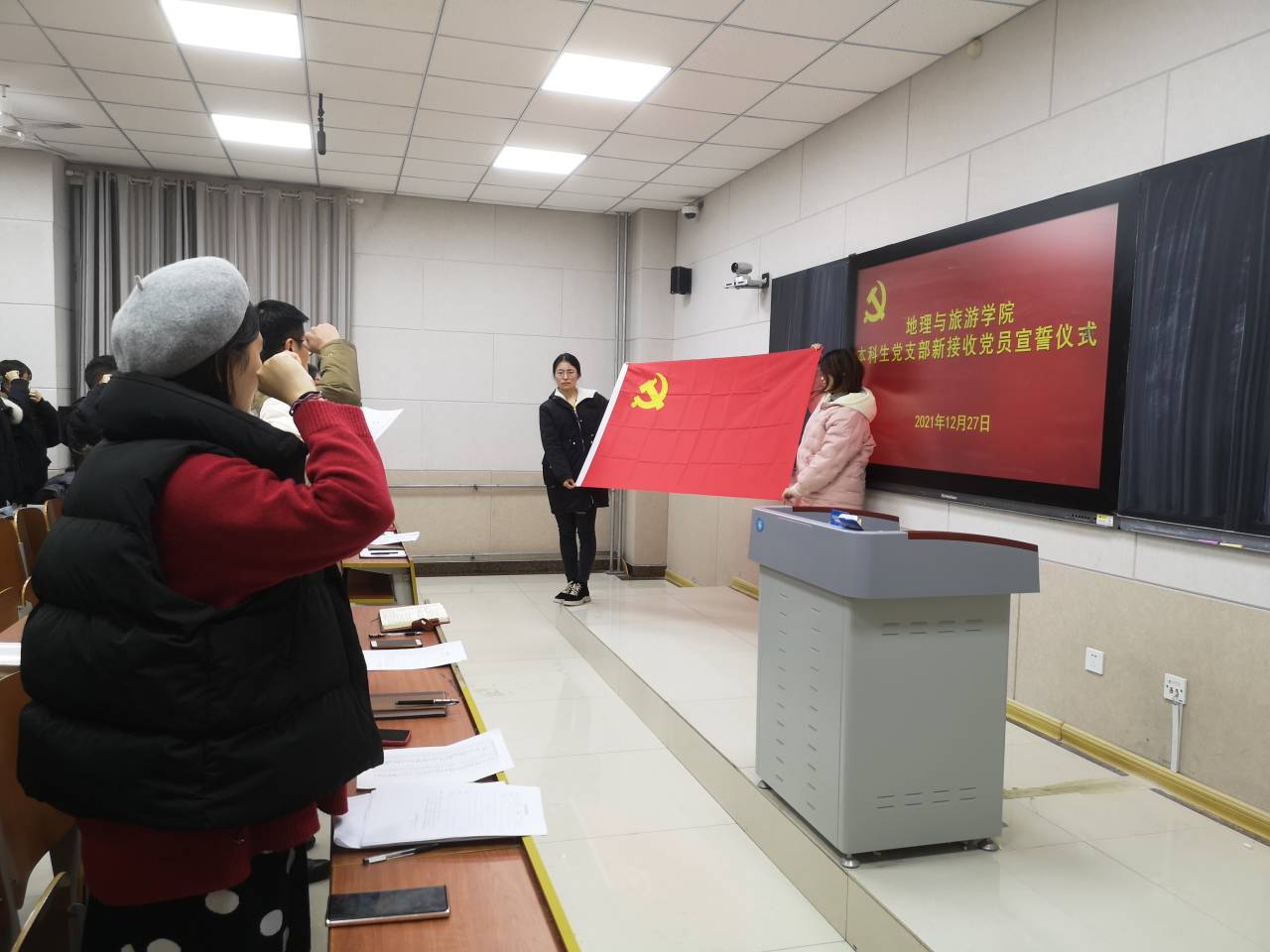 本科生党支部在S207举行了新接收党员宣誓仪式。仪式由本科生党支部书记田青领誓,支部全体党员同志参加。