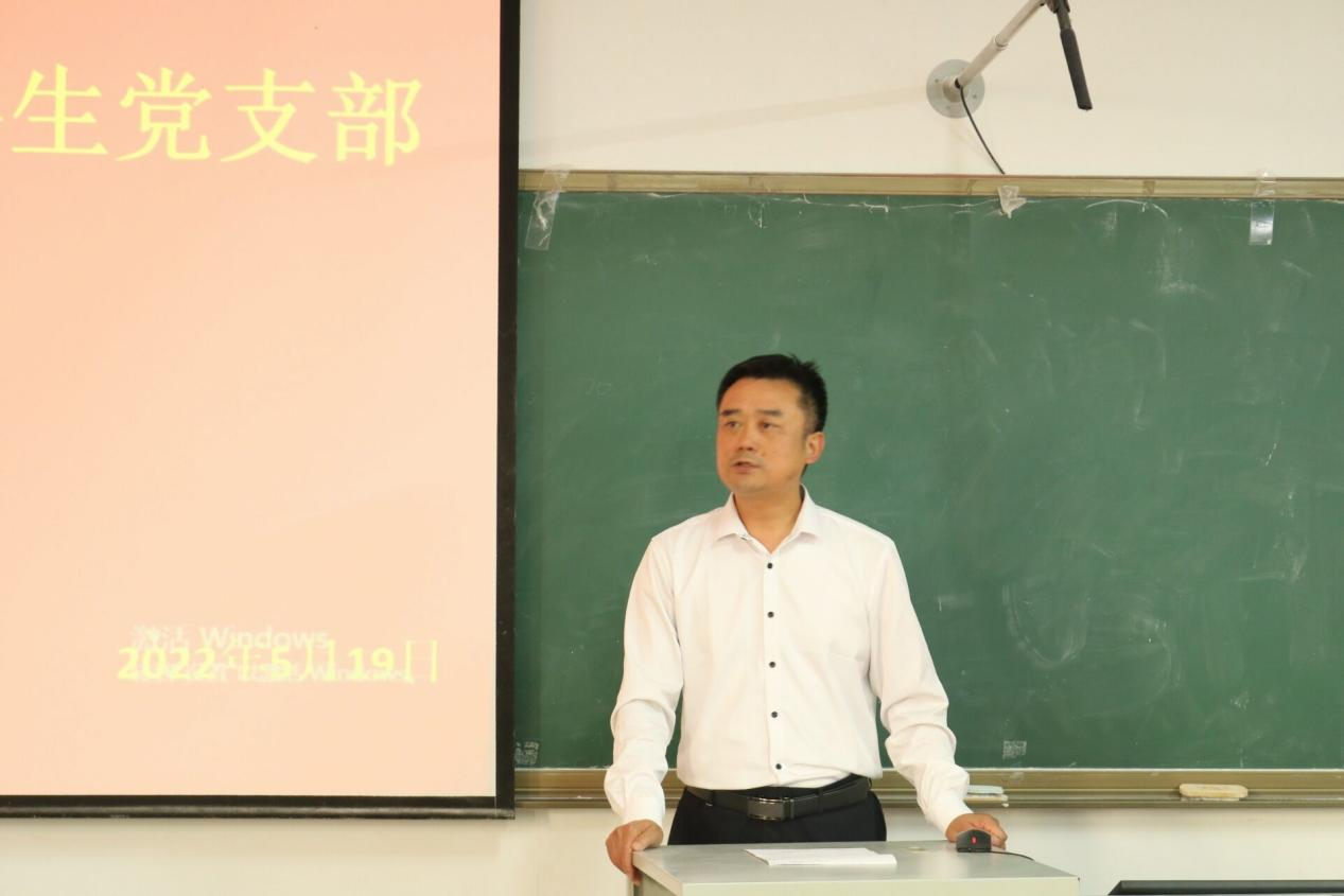 会上,刘伟表达了对15名新同志的祝贺。他提出,党员要时常思考“我们应该做什么”、“我们能做什么”、“我们做了什么”三个问题,由设问代入思考,强调发挥党员的先锋模范作用,在学习生活以及疫情防控等工作中带好头做表率,不忘初心,牢记使命,冲锋在前勇担当,越是艰险越向前。