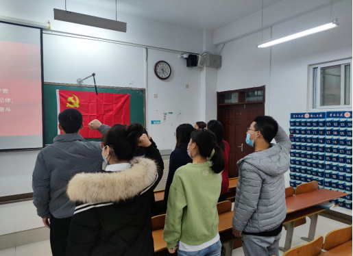 研究生党支部在S314教室举行了预备党员宣誓仪式。仪式由研究生党支部书记吕潇雨主持,青年委员崔硕领誓。