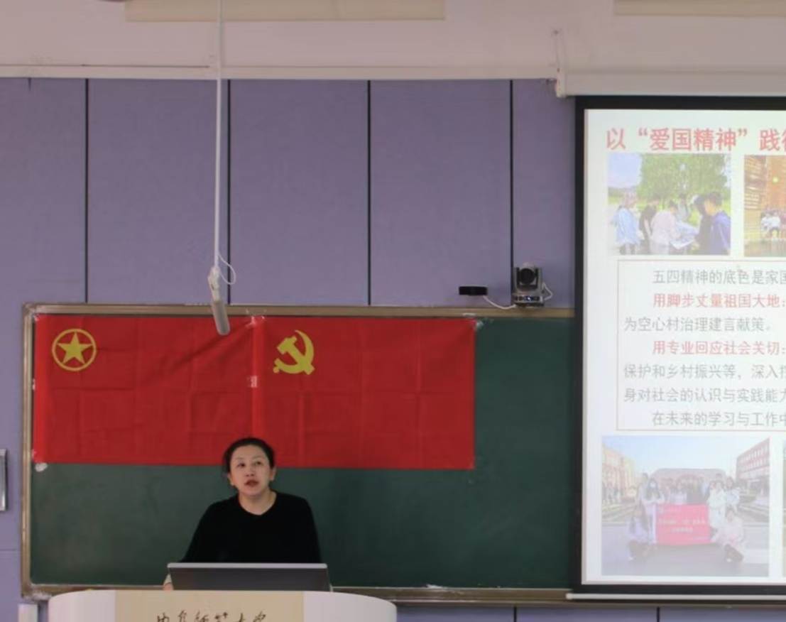 优秀教师代表的实践案例,详细阐述如何以科学精神深耕专业,夯实报国根基,为同学们提供系统全面的思想指导。随后,她以华东师范大学侯立军教授、北京师范大学张强教授等知名校友的事迹为例,激励同学们以榜样为标杆,将学术研究与实践紧密结合,将个人成长与国家发展紧密结合,把论文写在祖国大地上,勇担时代使命,以实际行动践行五四精神的时代内涵。